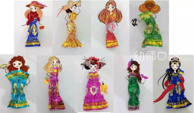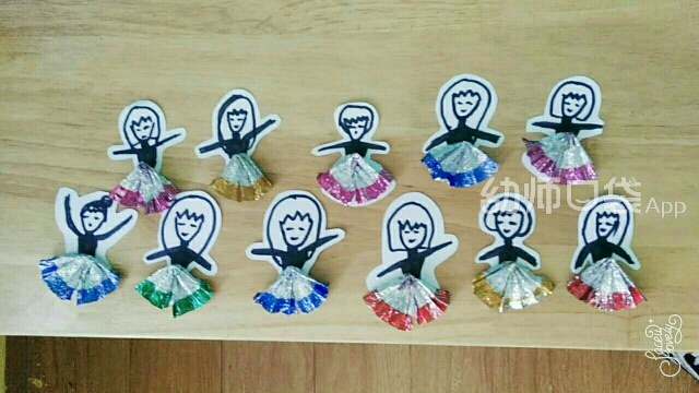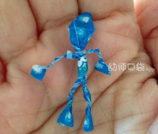 你还可以做一个糖纸小人,做完的小人晃动起来有塑料纸窸窸窣窣的声音,就像跳起舞来的小人衣裙摆动的声音~