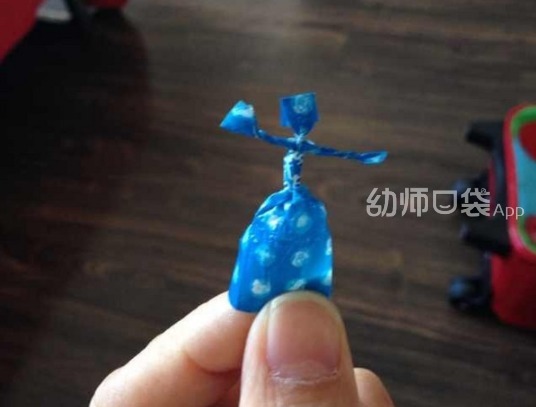 1.准备两张糖纸,一个作为身体,在三分之一的位置打结,使其产生头部躯干和下肢。