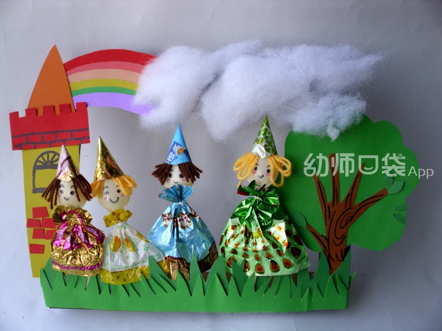 你还可以用小盒子给她们做一个糖果仙子的家,投放到表演区或者语言阅读区给孩子们自由讲述。